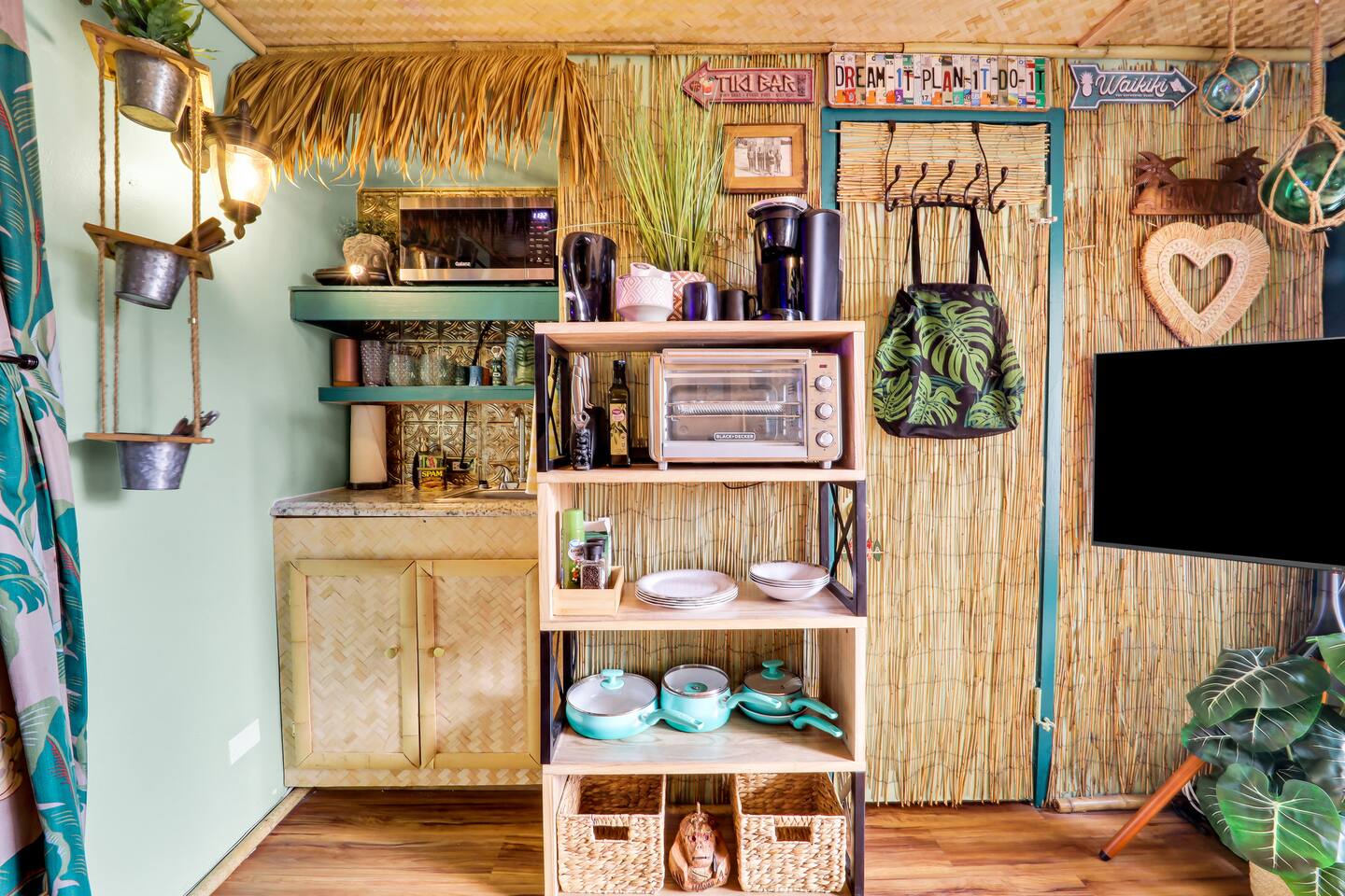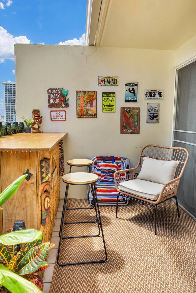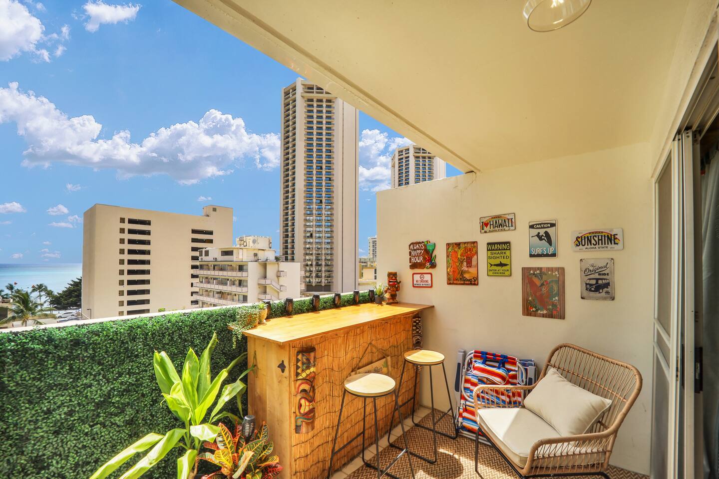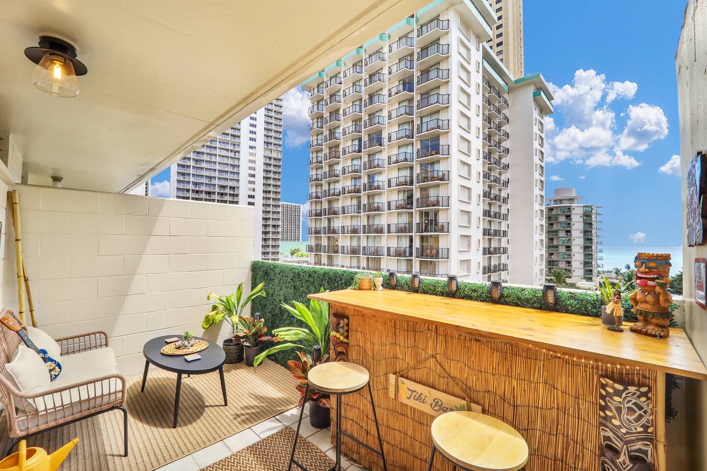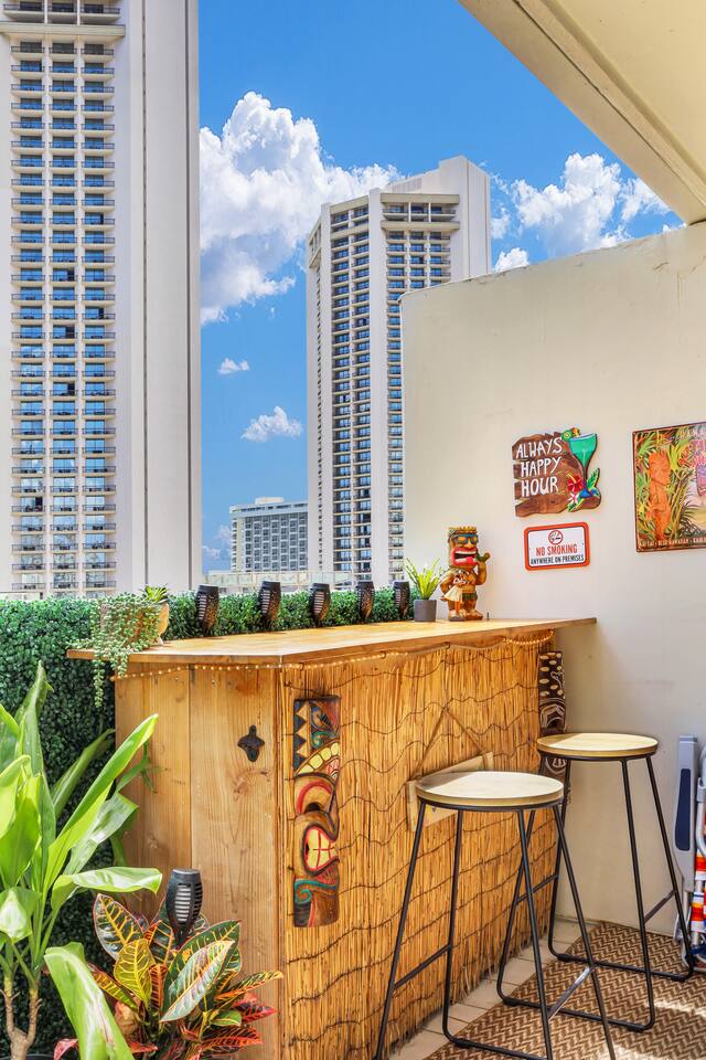 Welcome to the Tiki Hut Hideaway! Experience the Tiki Hut Hideaway in the Heart of Waikiki! Just one block from the ocean, this fun Tiki-themed condo offers the perfect blend of convenience, comfort, and island vibes. Key Features: Tiki-themed décor with a relaxing vibe. Sleeping arrangements: Daybed with memory foam full-size mattress (sleeps 2). Large couch for additional seating. Max occupancy: 2 guests. Fully Equipped Kitchen: Hot plate, air-fry toaster oven, Keurig, kettle, rice cooker, magic bullet blender. Small full-sized fridge with freezer. Tiki cocktail glasses for island-inspired drinks. Private Bathroom: Large stand-up shower, toilet, sink, and ample counter space. Outdoor Balcony: partially covered for shade. Features a Tiki Bar with breathtaking ocean views. Includes a loveseat, outdoor chair, and solar-powered Tiki lights for ambiance. Extra Amenities: Bluetooth speaker for music. Tommy Bahama beach chairs and towels for beach outings. Closet for clothing storage. Building Amenities: 24-hour security and cameras in common areas (none inside the unit). Paid parking ($25/24 hours, height max 5’9”). Lobby features a bike rental and surfboard lesson shop. Nearby laundromat within walking distance. Location Highlights: Just one block to Waikiki Beach. Surrounded by incredible food options. Located in the heart of Waikiki with easy access to attractions. Make your stay unforgettable with the vibrant Tiki Hut Hideaway!
